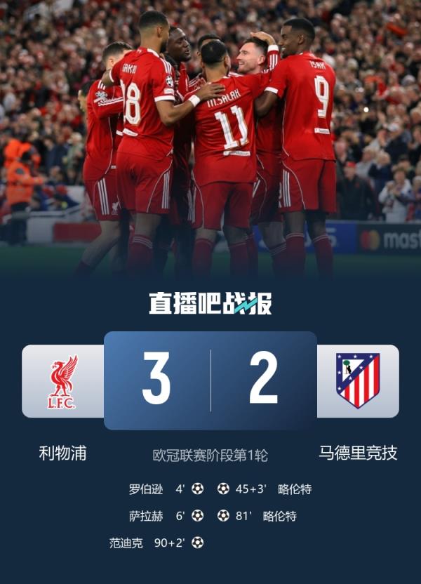 欧冠第一轮,利物浦3-2惊险绝杀马竞,取得欧冠开门红。利物浦,再一次绝杀!