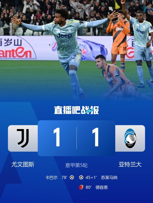 5轮不败!尤文1-1十人亚特兰大 卡巴尔替补救主阿季奇被断致丢球