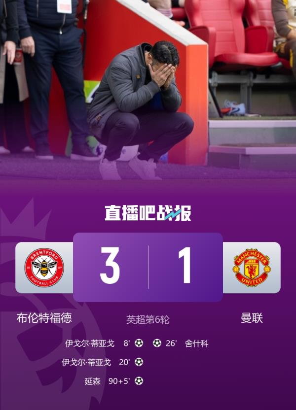 6轮7分!曼联1-3布伦特福德六轮三负 B费关键失点舍什科处子球