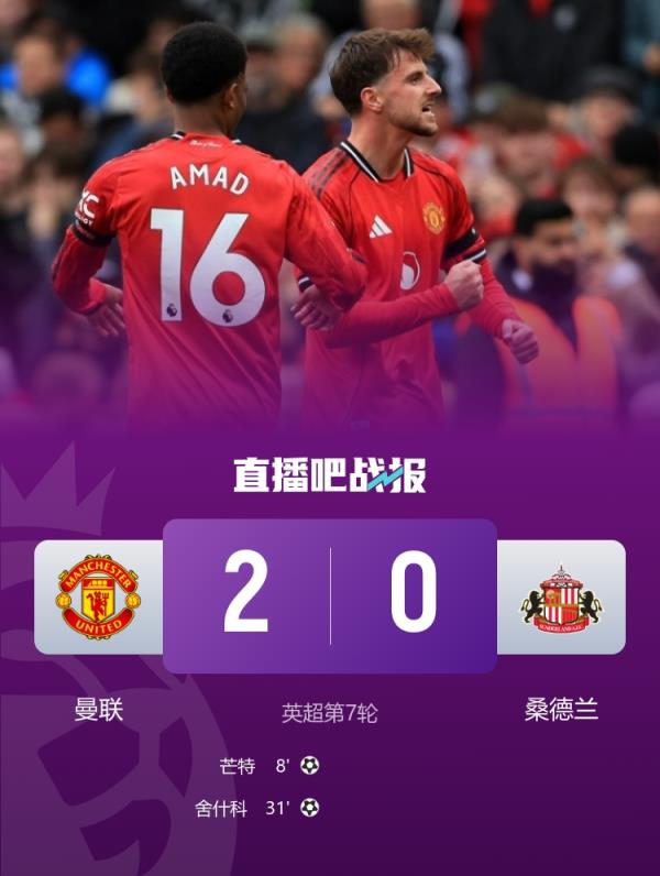 曼联取赛季第3胜,先赛积分追平第7曼城;芒特、舍什科破门,拉门斯首秀惊艳。